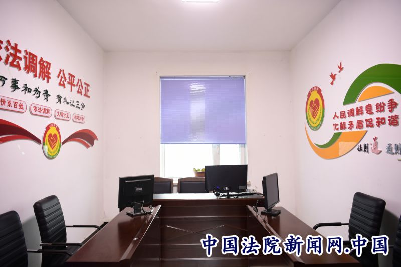 进入调解区,首先映入眼帘的是清新明快的绿色,走廊的墙上张贴了“公平公正、依法调解”的标语,还为当事人详细介绍了调解工作流程和诉前调解工作规定。调解区新增了一间调解室,现在一共两间。走进调解室,“让一步心平气和,退一步天空海阔”、“万事和为贵,有理让三分”的话语可以平复当事人心中的急躁愤懑,调解工作比较容易达到事半功倍的效果。