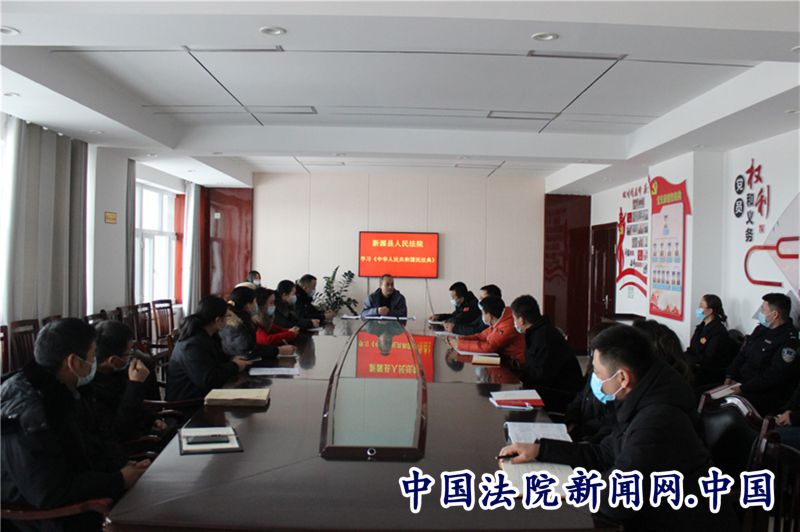 会议中,新源县人民法院党组书记、副院长褚福超同志以“第三次中央新疆工作座谈会为统领,大力弘扬宪法精神,推动民法典贯彻实施”为主题的“与法同行”宣讲,随后,褚书记传达了习近平总书记在中央全面依法治国工作会议上的重要讲话,解读了《中华人民共和民法典》的有关内容。他要求全院干警要学习宣传《中华人民共和国宪法》、《中华人民共和国民法典》,深刻认识开展“12•4”国家宪法日、宪法宣传周的重大意义,切实抓好党的十九届五中全会精神、宪法及各类法律法规宣传,用群众听得懂的语言,用身边的典型案例宣传宪法精神,教育引导各族群众树立正确的国家观、历史观、民族观、文化观、宗教观。增强各族人民的法律意识和法治观念。